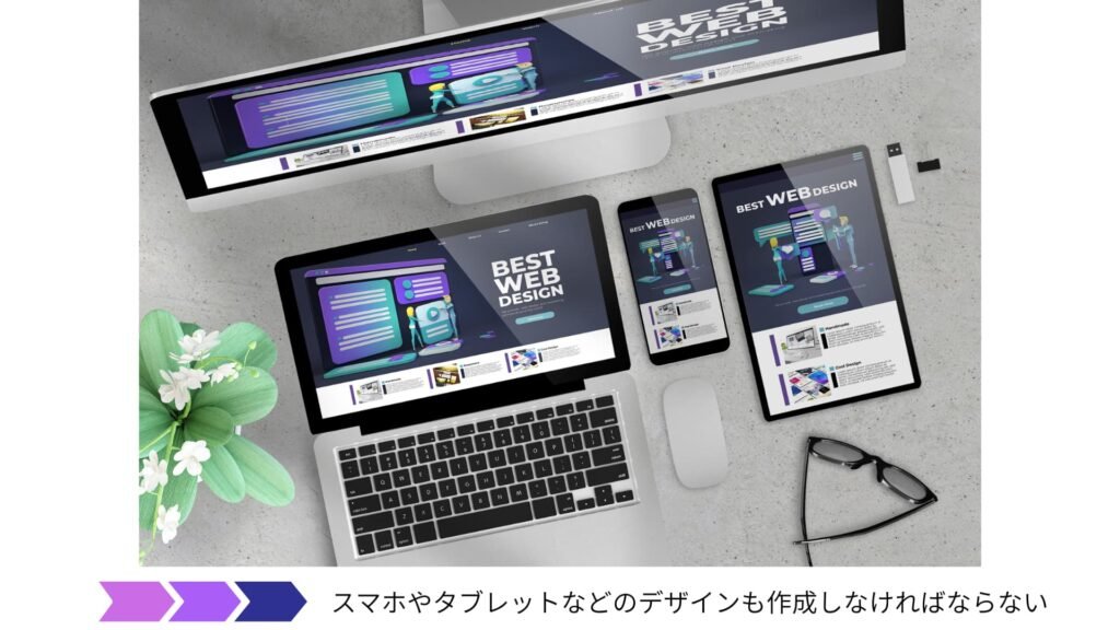 従来のやり方では、1つのページを確認するだけで複数のデザイン案・スマホやタブレット等のデバイス対応を作らなければなりません。