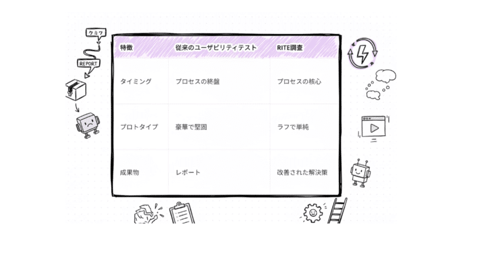 RITEはRapid Iterative Testing and Evaluationの略で、ラフなプロトタイプでユーザーにとって有用な体験となっているかを検証し、素早く改善を繰り返す方法です。