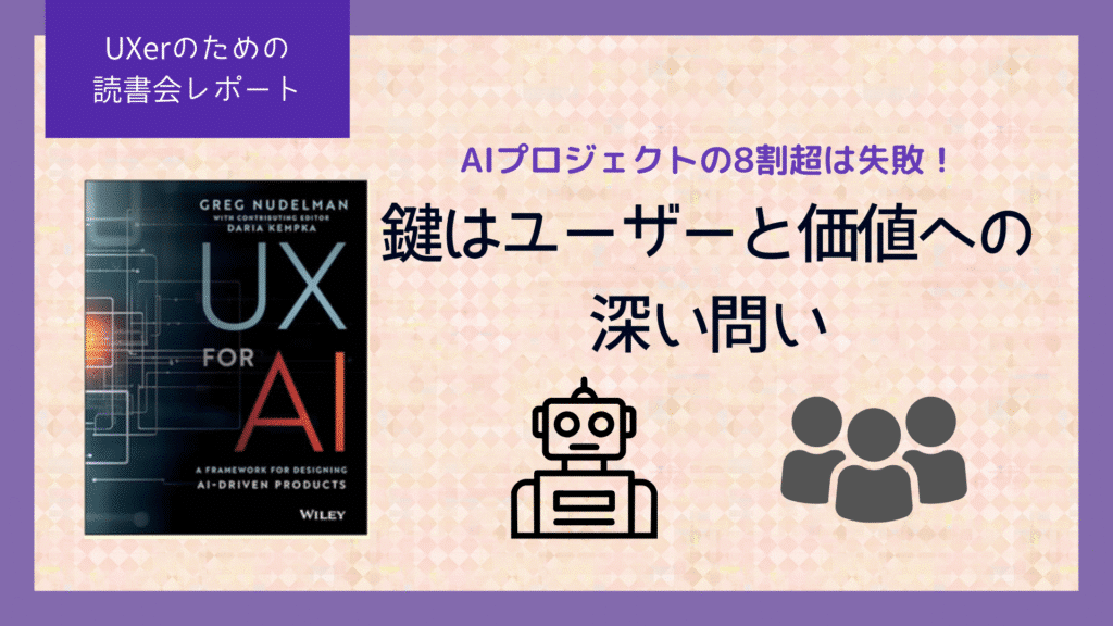 書籍や読書会の中で特に印象的だったのは、「AIプロジェクトの85%以上が失敗している」という事実です。その主な原因は、UX設計やユースケース選定の誤りにあると分析されていました。