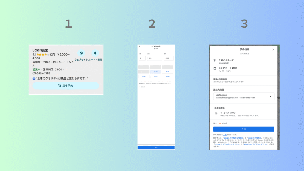 3タップで完了するGoogle予約