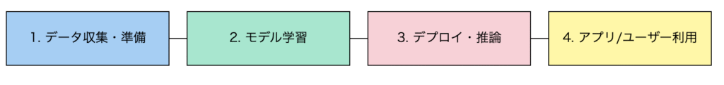 - アプリ/ユーザー利用 — 推論結果をアプリケーションやサービスに組み込み、ユーザーに価値を提供する。