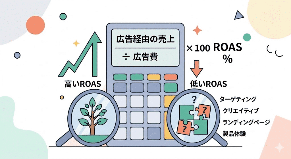 - 体験上の課題発見: ROASの数値は、広告から購入に至るまでのユーザー体験全体の質を反映する。指標の悪化をきっかけに、ランディングページや購入プロセスの問題点を発見し、改善の優先順位を判断する材料となる。