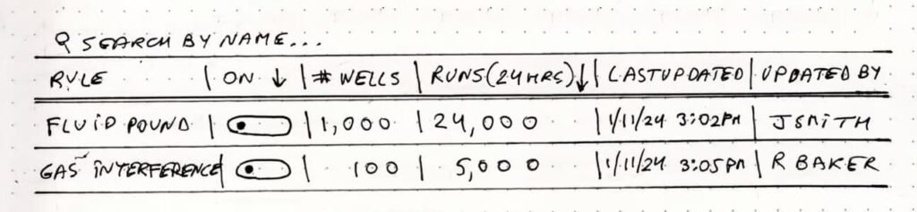 Rule Name|ON|#Wells|Runs (24hrs)|Last update| by
