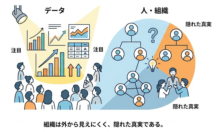 成功している企業の強さが組織にあることは、薄々みんな知っています。しかし、組織は外から見えづらく、数字になりづらい。比べられないから、本気で設計する人がいない。まさに「隠れた真実」の条件をそのまま満たしています。